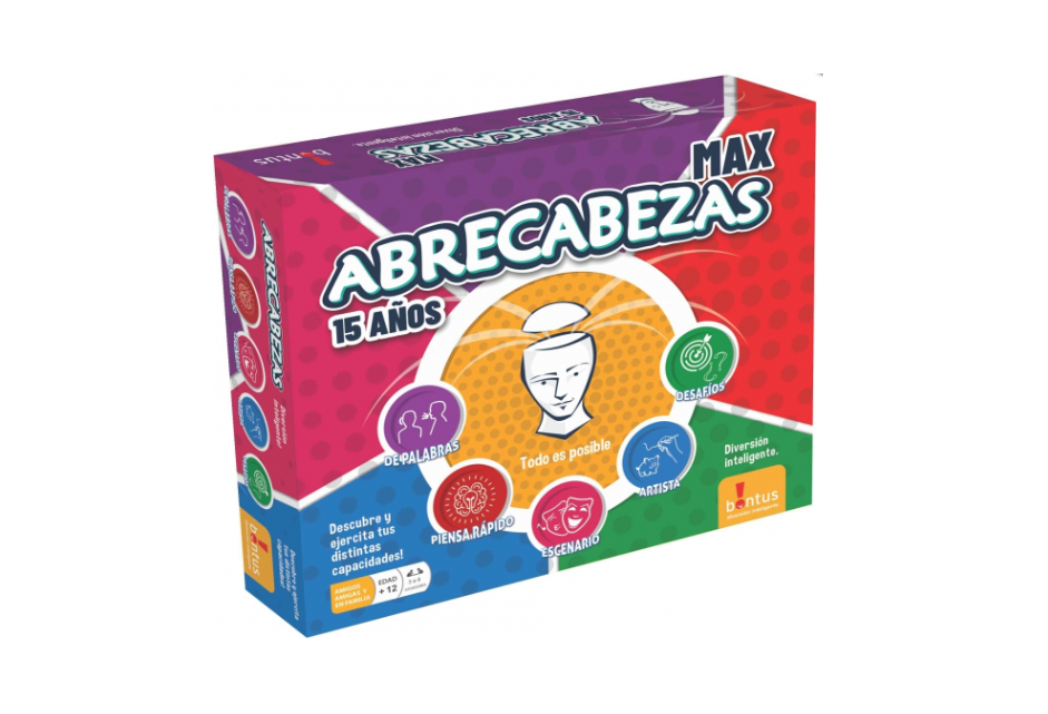Abrecabezas celebra sus 15 años de diversión inteligente, con una versión “Max”, cargada de nuevas y originales actividades para disfrutar junto a amigos y en familia. Piensa Rápido (menciona 3 y 3 definiciones): Antes que caiga la arena del reloj, menciona 3… Desafíos (problemas y adivinanzas): El primero que lo resuelva se queda con el punto. Escenario (silbar y actuar): Silba/tararea o actúa y que los demás entiendan de qué se trata… Y más actividades: De palabras (anagramas y dilo al revés) y Artista (dibujar y modelar): Utilizando las misma letras de “Coral”, puedes formar otra palabra? Podrías pronunciar “Lateral” al revés, y qué tal dibujar “Plato volador” o modelar “Manzana” (con masa)? Vamos a jugar a y abrir la cabeza! Tiempo de aprendizaje: 10 minutos. Tiempo de juego: 40 a 60 minutos.
