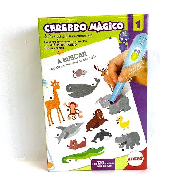 El libro del cerebro magico, con mas de 120 opciones para descubrir. Encuentra las respuestas correctas con el lapiz electronico con luz y sonido.