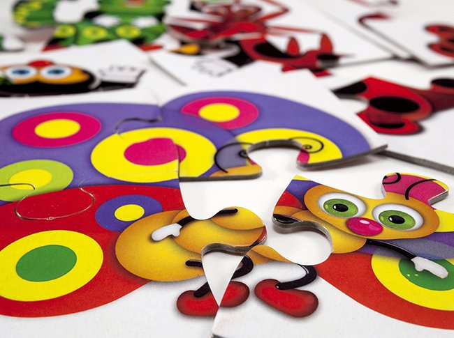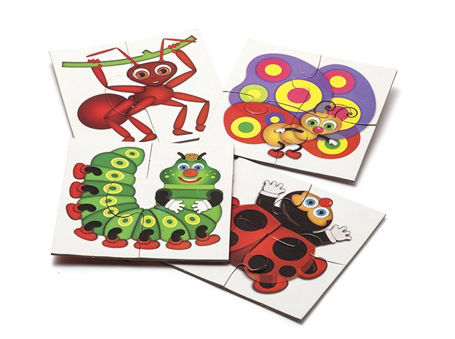 Cuatro divertidos puzzle de dos y cuatro piezas ¡Ideales para que los más chiquitos aprendan a reconocer y diferenciar las figuras!